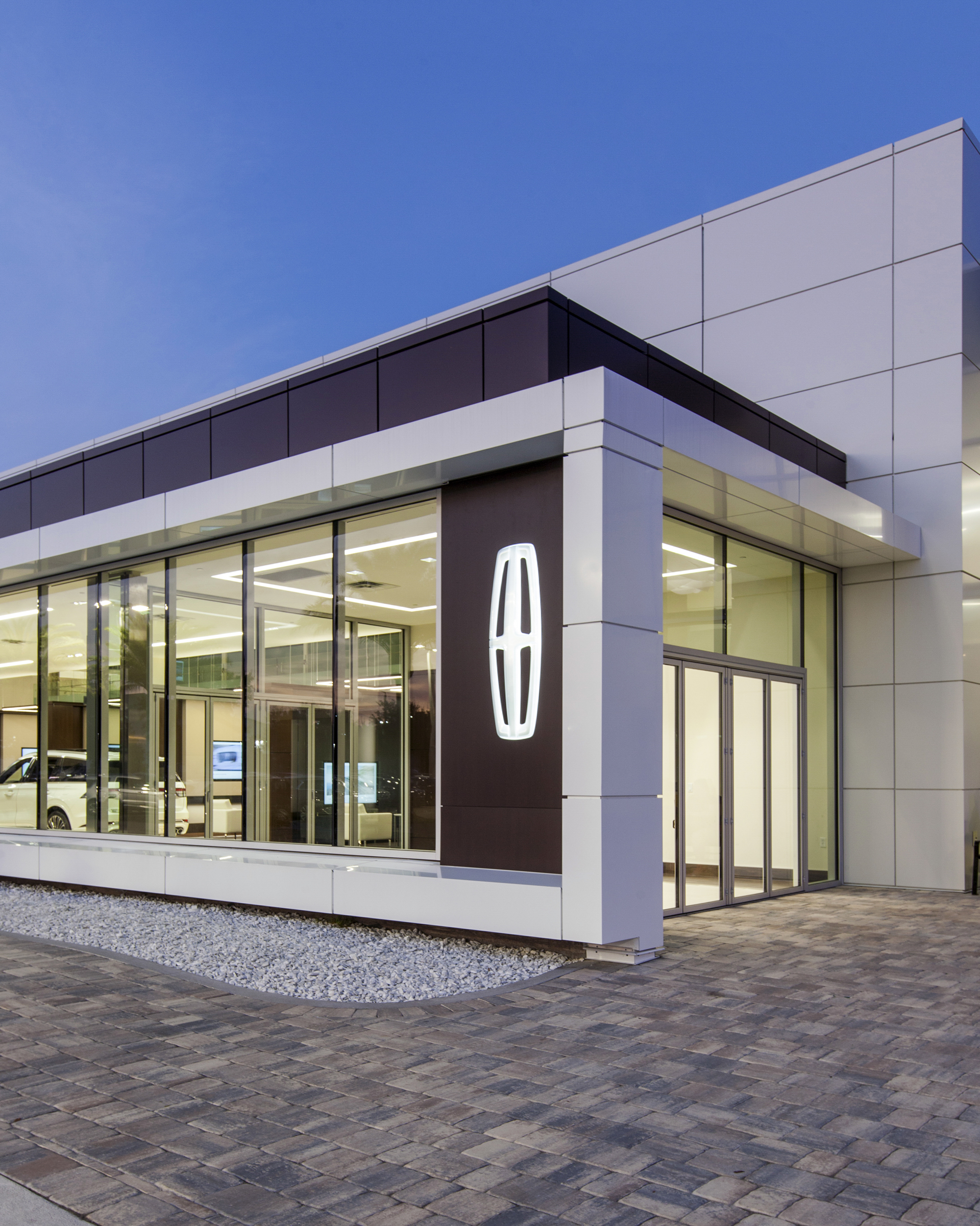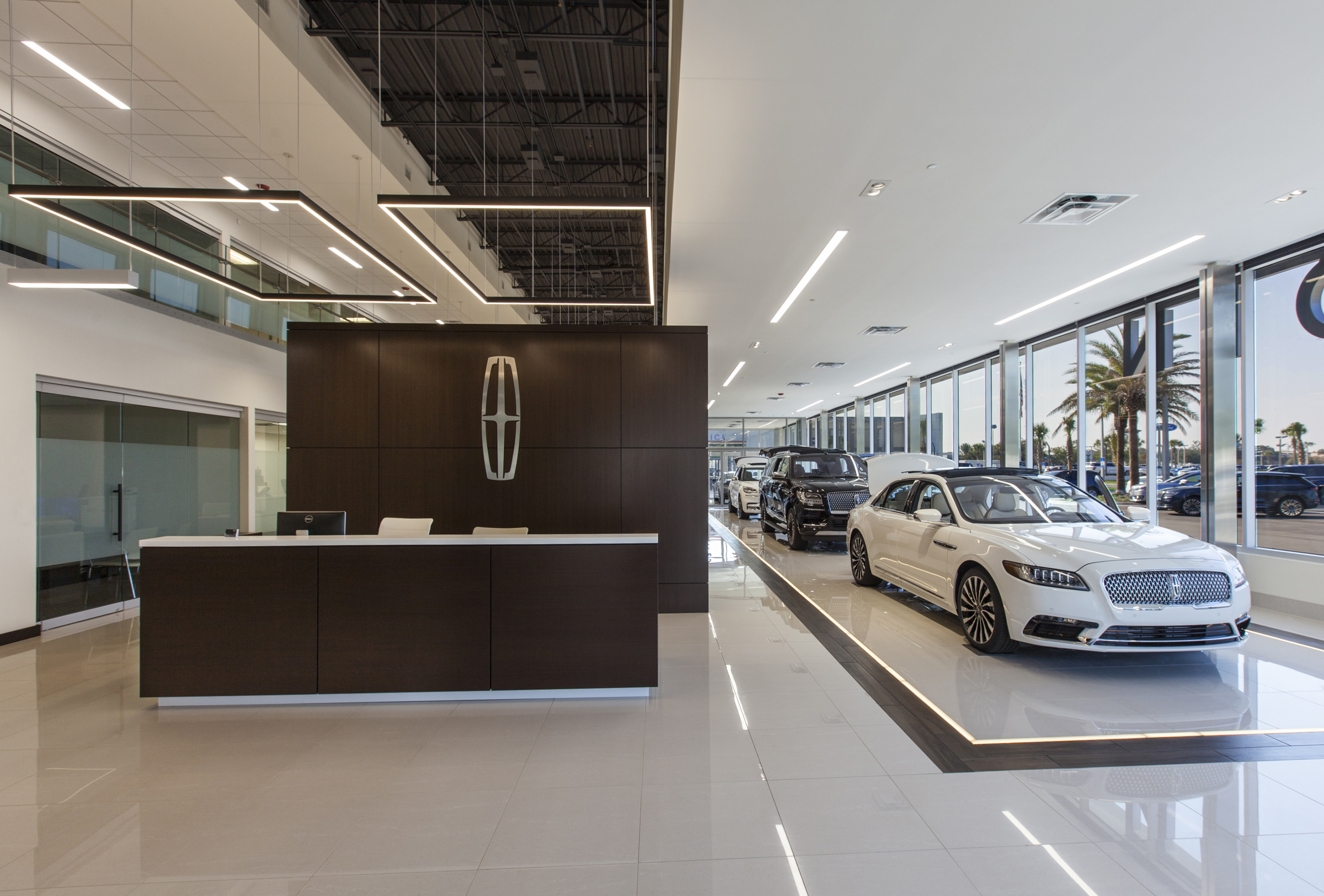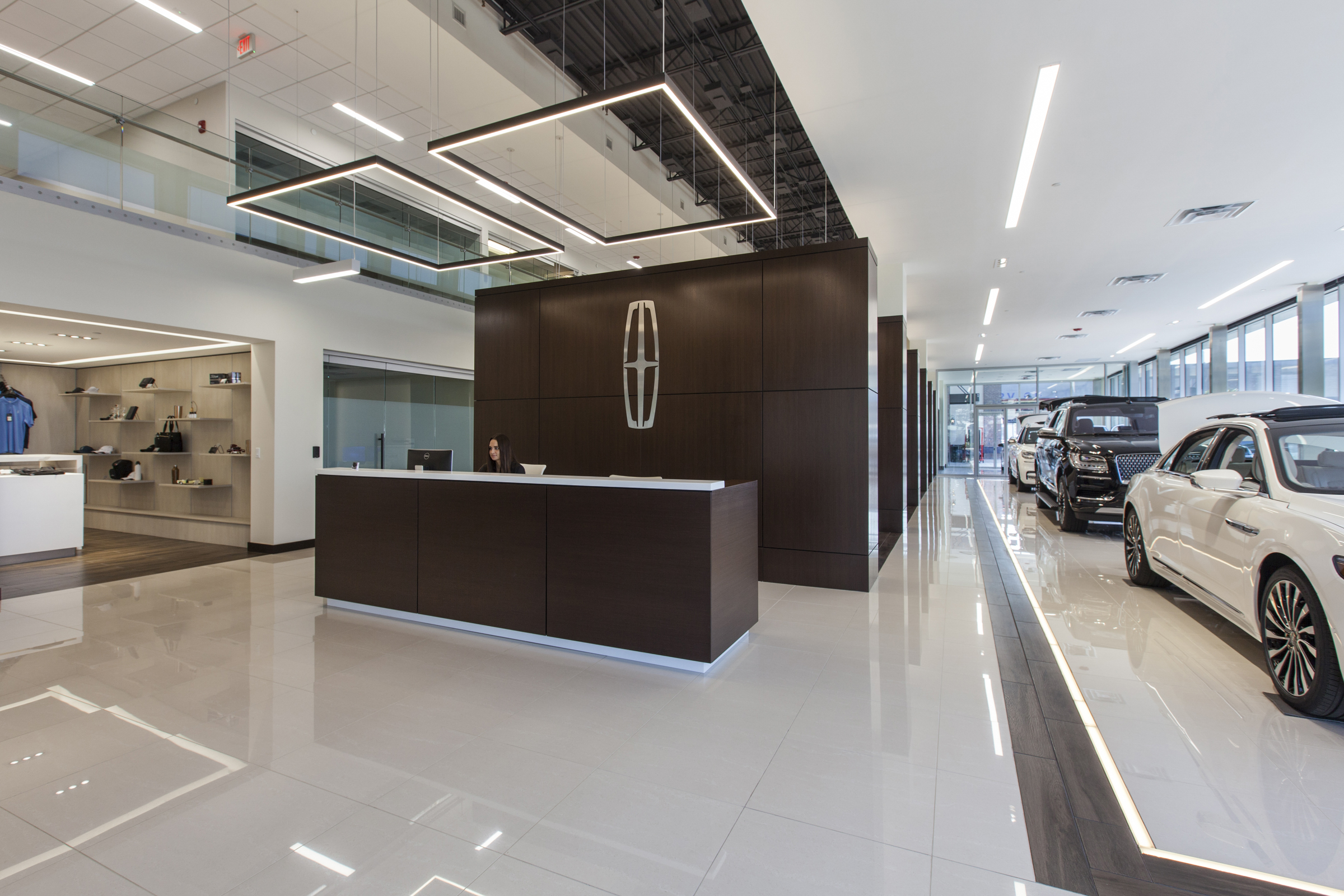 New construction of a total 44,360 SF for two buildings on a greenfield ten-acre site. One two-story, 100% conditioned building of conventional steel frame with block and glass enclosure for the showroom, sales and office space to include a drive through covered service drop off area. One single story, 88% conditioned, pre-engineered structure with block, glass and overhead door enclosed for the Quick Lane services and general service area. This service area included six Quick Lane bays and 26 Service bays.