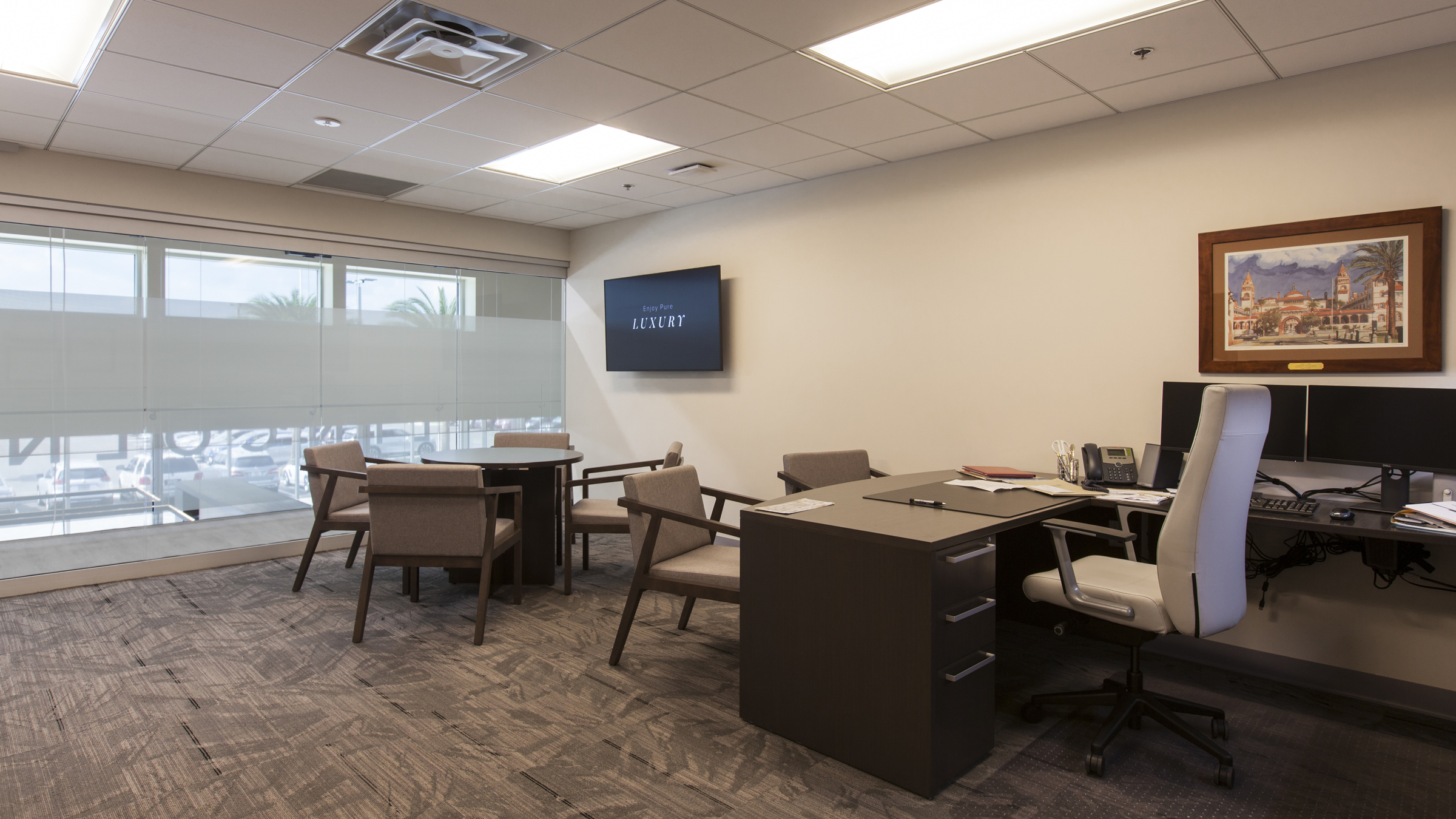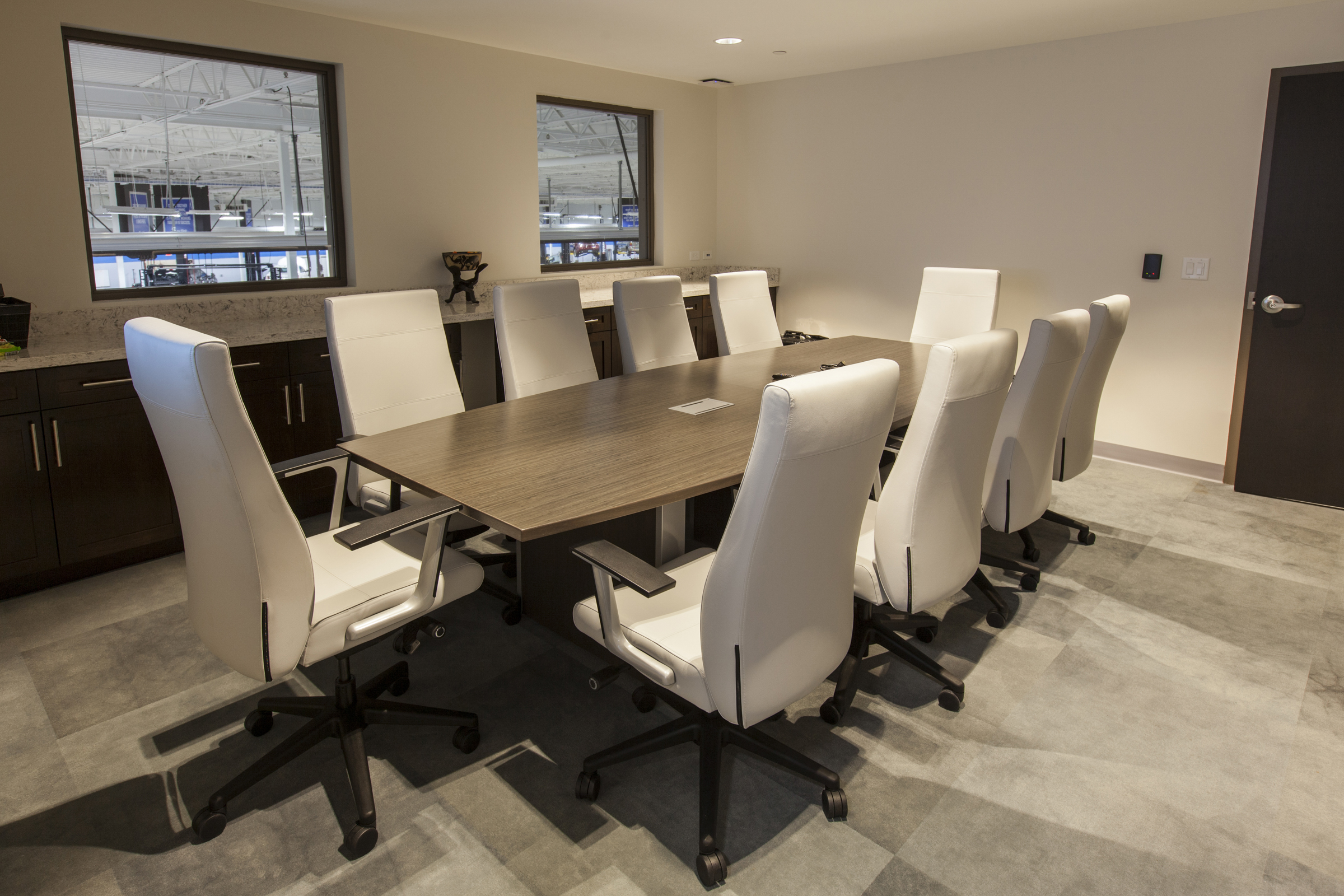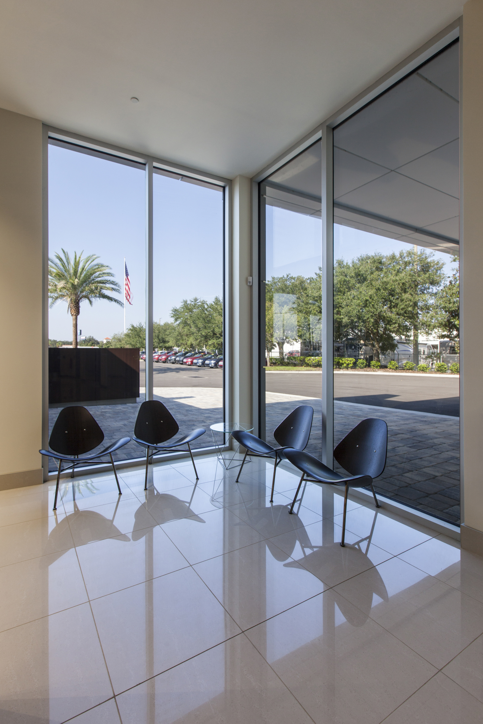 New construction of a total 44,360 SF for two buildings on a greenfield ten-acre site. One two-story, 100% conditioned building of conventional steel frame with block and glass enclosure for the showroom, sales and office space to include a drive through covered service drop off area. One single story, 88% conditioned, pre-engineered structure with block, glass and overhead door enclosed for the Quick Lane services and general service area. This service area included six Quick Lane bays and 26 Service bays.