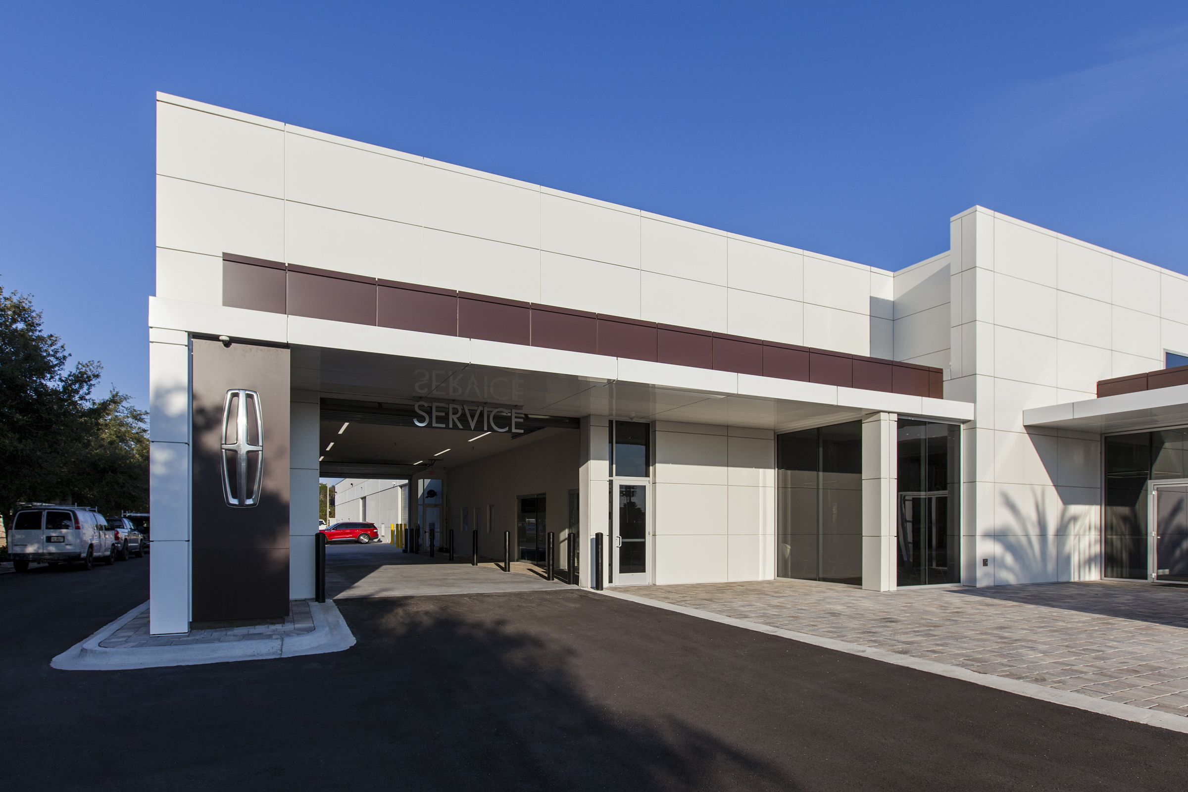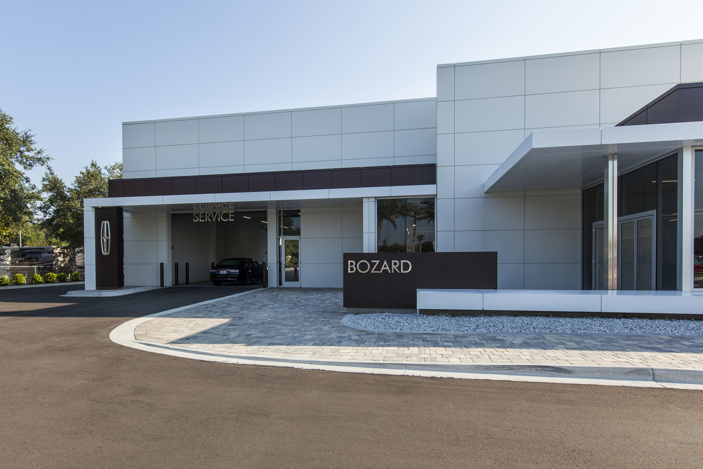 A new 11,800 SF single-story 12-bay automotive service building built on a green field site. The 12-bay automotive service building is located adjacent to the existing Bozard Ford Lincoln Dealership in St. Augustine.