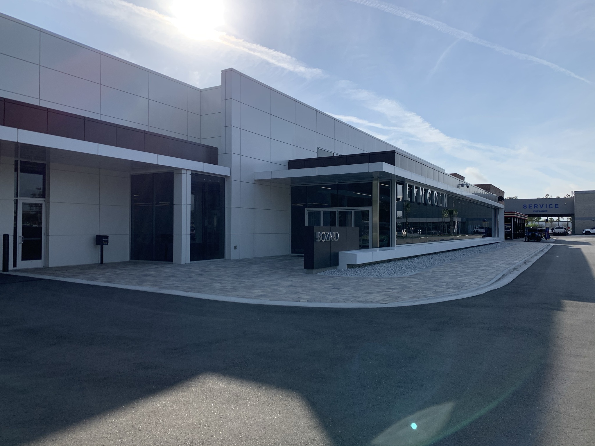 As the project management team behind the Bozard Lincoln Ford dealership development, we are proud to deliver a facility that reflects the brand’s commitment to innovation, customer experience, and operational excellence. Located on a ten-acre greenfield site near the St. Augustine outlet malls, the project includes the construction of two buildings totaling over 44,000 square feet. The centerpiece is a two-story, fully conditioned steel-frame structure with block and glass enclosure, housing the showroom, sales offices, and administrative spaces.
